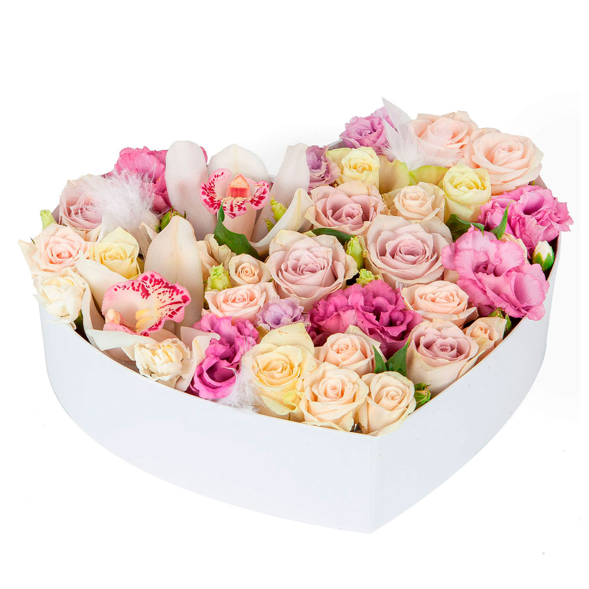 Цветы в коробке «Нежный флер» с доставкой по г Тула: вы можете заказать букет в супермаркете цветов «Флормания» по цене от 2890 руб.