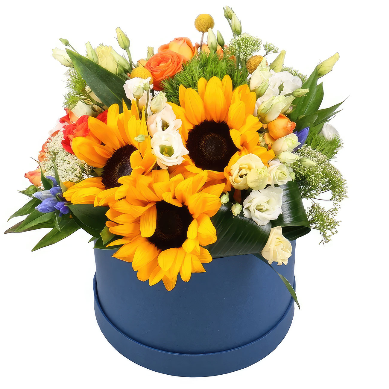 Цветы в коробке «Подсолнечное настроение» с доставкой по г Тула: вы можете заказать букет в гипермаркете цветов «Флормания» по цене от 2890 руб.