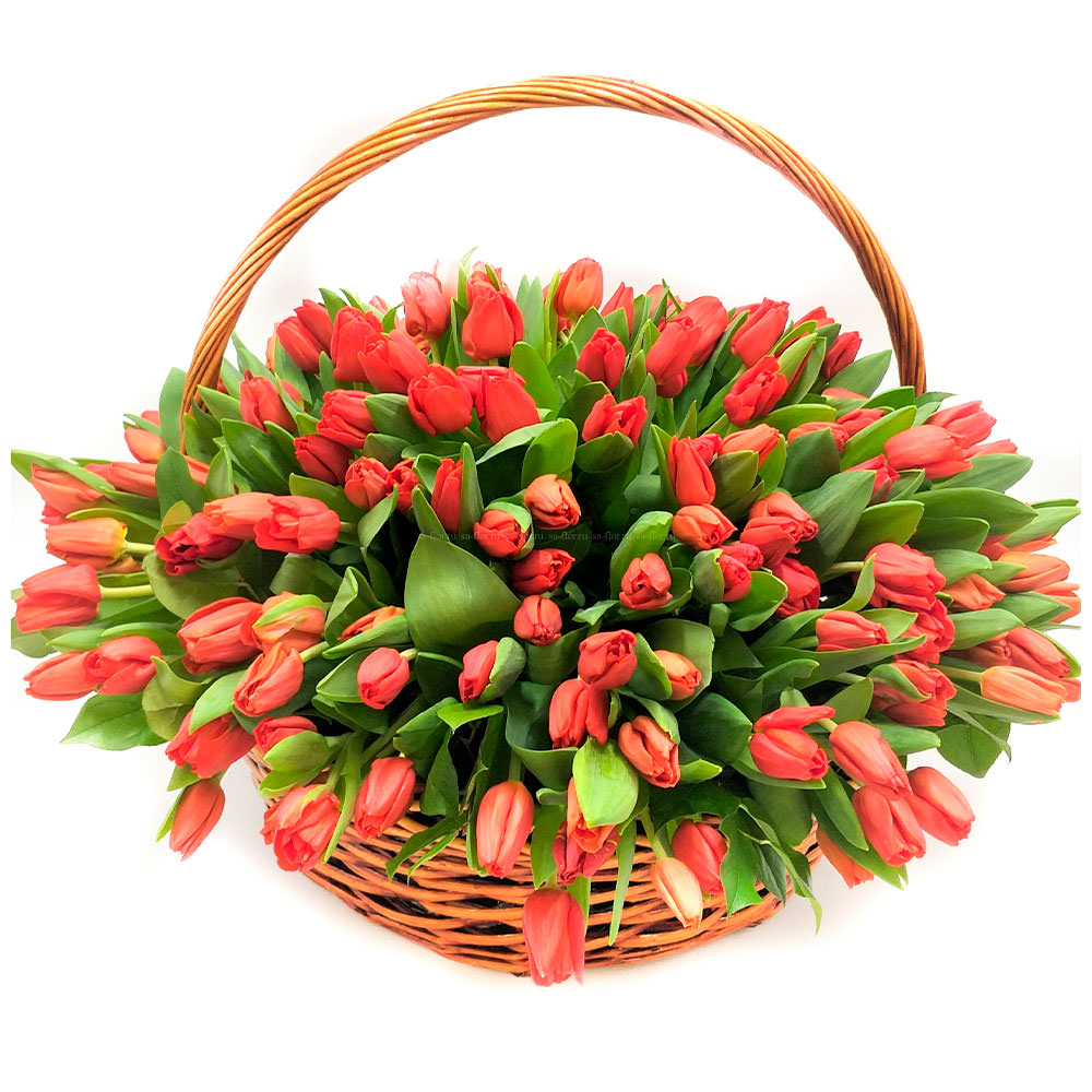 Цветы в корзинке «Красные тюльпаны» с доставкой по г Тула: вы можете купить букет в цветочном салоне «Флормания» по цене от 3190 руб.